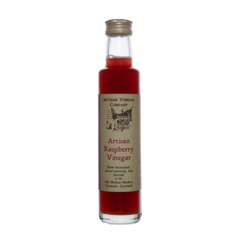 This delightful vinegar is made from 100% whole raspberries in Cornwall, England. The raw fruit ferments into wine, and then the fruit wine slowly converts into vinegar. Then the vinegar is allowed to mature in barrels. When it is ready, it is drawn from the barrel and bottled. This vinegar is unfiltered, unpasteurized, and unadulterated. No concentrates, extracts, sulfites, flavorings, colorings, or preservatives are added.