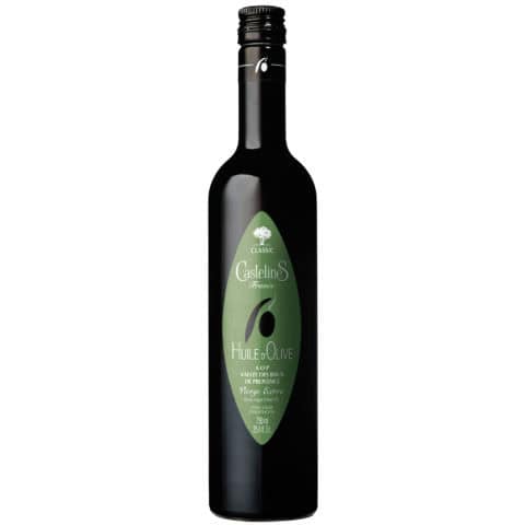 The oil is made with four olive varieties native to the groves of Domaine Castelas: Salonenque, Aglandau, Grossane and Verdale and is an AOC Vallee des Baux de Provence olive oil.