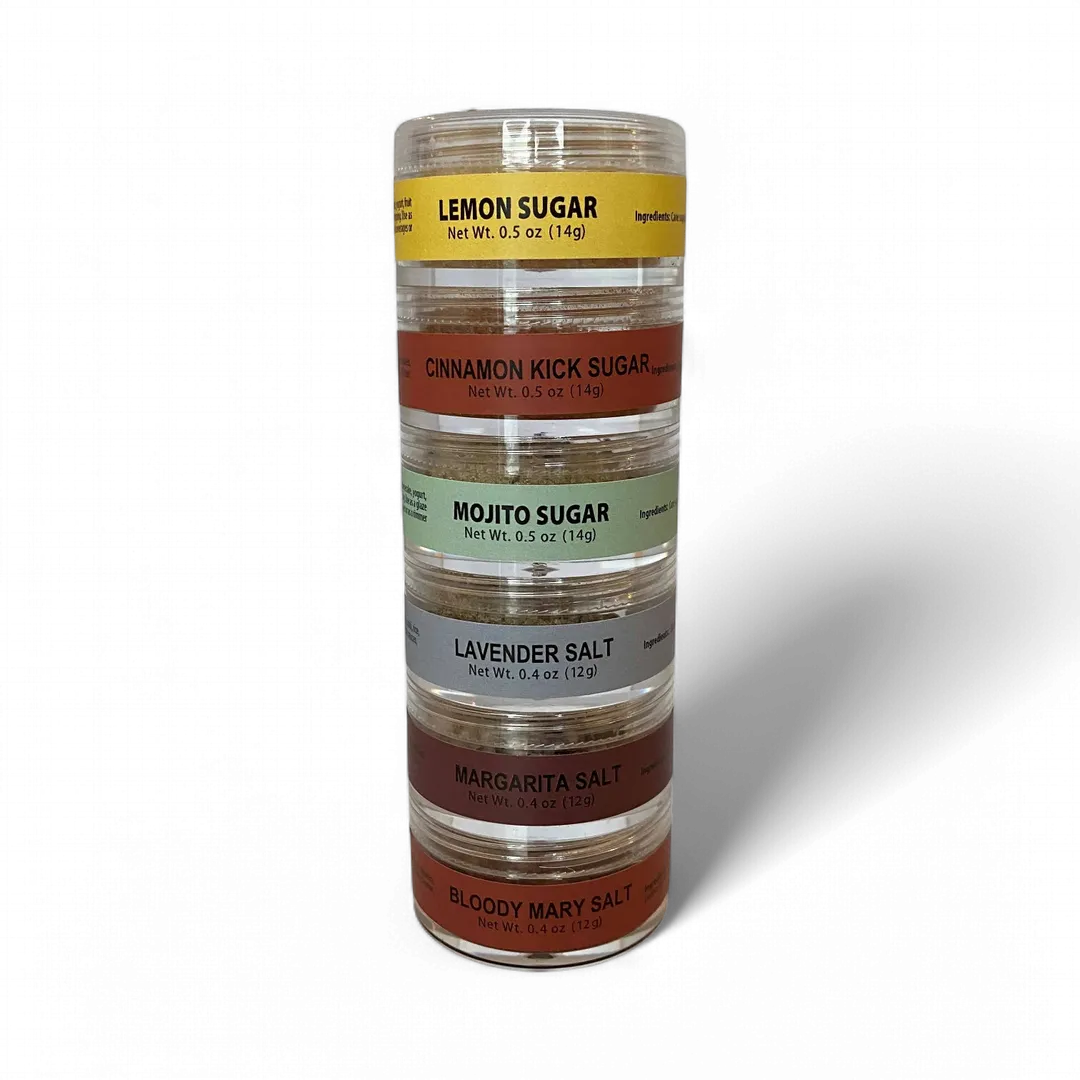 Looking for a stellar drink? Try these seasoned salts and sugars to complete the flavors of your favorite cocktail. Our Cocktails Aplenty sampler is a fantastic assortment of cocktail finishing salts and sugars.