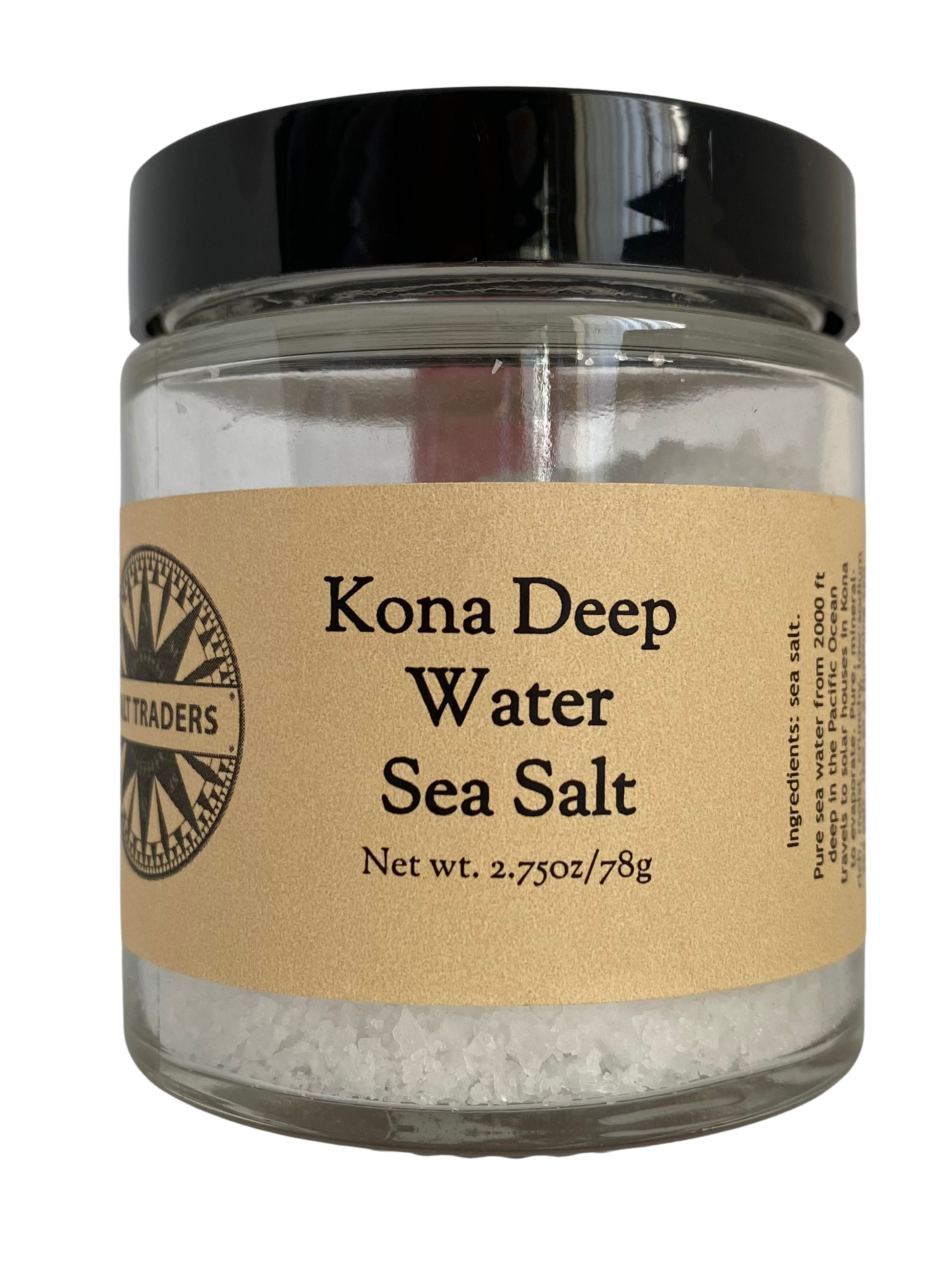 Kona Deep Water Sea Salt is made by a unique, innovative method. Pure sea water travels from many fathoms below the ocean's surface to "greenhouses" where it dries under the Hawaiian sun. The water and resulting salt is never exposed to environmental elements. Moist, pure white, medium grain, flaky crystals, Kona Deep Water Sea Salt is delightful. 100% natural, rich mineral flavor. For those looking for low sodium, this salt is one of the lowest: 78.2% sodium chloride.