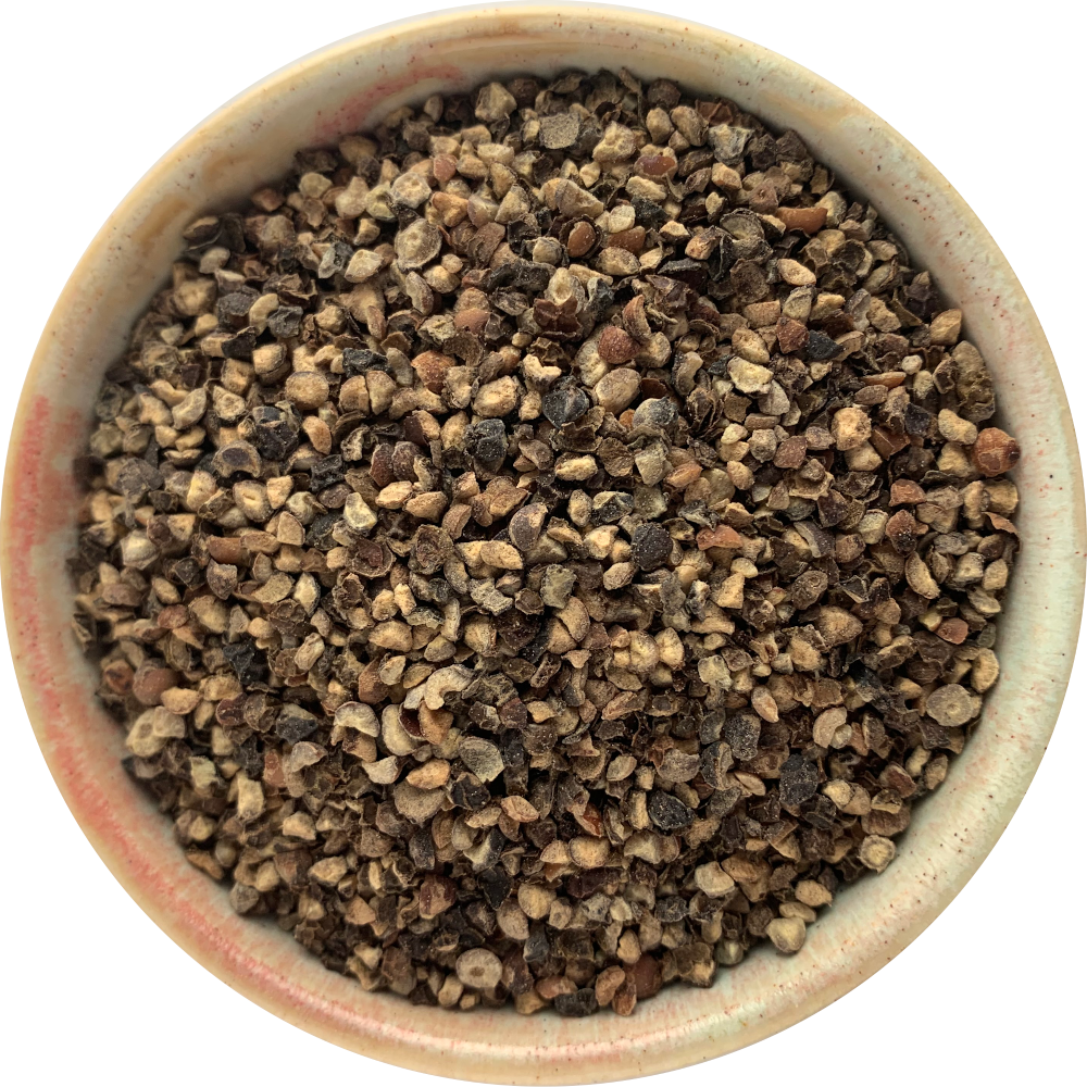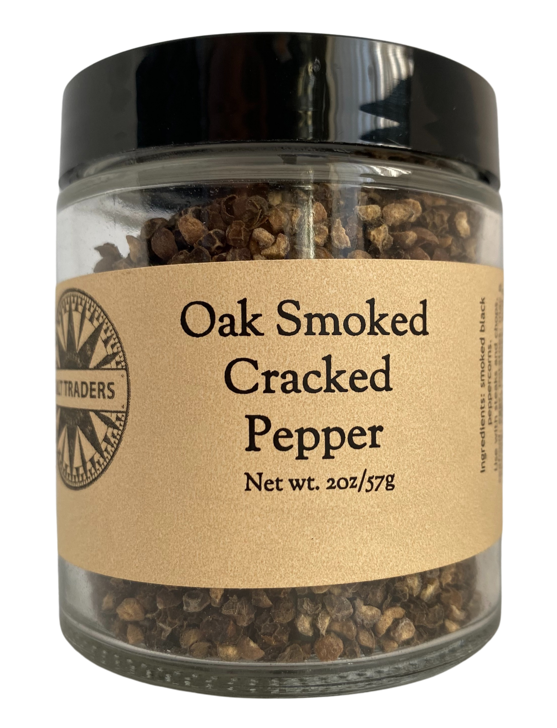 Oak Smoked Cracked Peppercorns are a labor of love. Coarsely cracked and smoked, these peppercorns define artisanal. The process is quite labor-intensive and takes several hours to complete. They are slow-smoked with aged oak bourbon barrels to achieve just the right amount of smoke. Use these to finish a dish as these peppercorns have a nice bite with a crunchy texture.